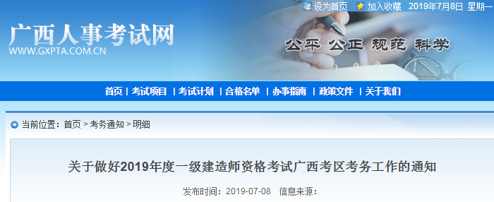 關(guān)于做好2019年度一級建造師資格考試廣西考區(qū)考務(wù)工作的通知