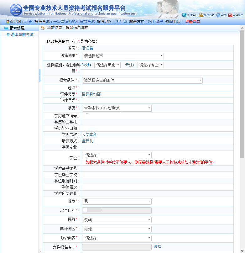 4. 報名信息確認前應認真核查并保證證件類別、證件號碼、姓名、報考級別、報考專業(yè)、科目信息、電話、工作單位、電子郵箱、通訊地址和郵政編碼等準確無誤。報名信息確認后,報考人員不得自行修改。
