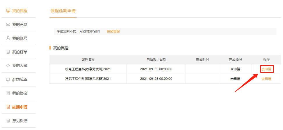 之前已經(jīng)報(bào)名網(wǎng)校2021年一級(jí)建造師考試課程的同學(xué),可以申請(qǐng)延期課程了,入口在“我的網(wǎng)校我的家”,請(qǐng)大家及時(shí)申請(qǐng),不要錯(cuò)過(guò)。