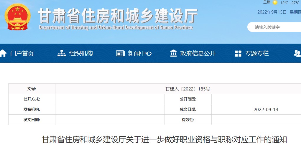 甘肅省住房和城鄉(xiāng)建設(shè)廳關(guān)于進(jìn)一步做好職業(yè)資格與職稱對(duì)應(yīng)工作的通知