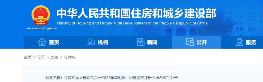 住房和城鄉(xiāng)建設(shè)部關(guān)于2023年第七批一級建造師注冊人員名單的公告