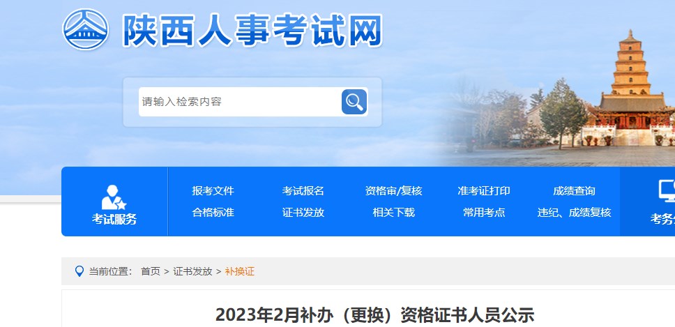 2023年2月補(bǔ)辦(更換)資格證書的人員已公示,會(huì)計(jì)、審計(jì)和房地產(chǎn)估價(jià)師不在公示范圍。公示期2023年2月24日至2023年3月2日。如對公示結(jié)果有異議,可向陜西省人事考試中心反映,證書領(lǐng)取另行通知,請關(guān)注本網(wǎng)站或公眾微信號sxrskswx。