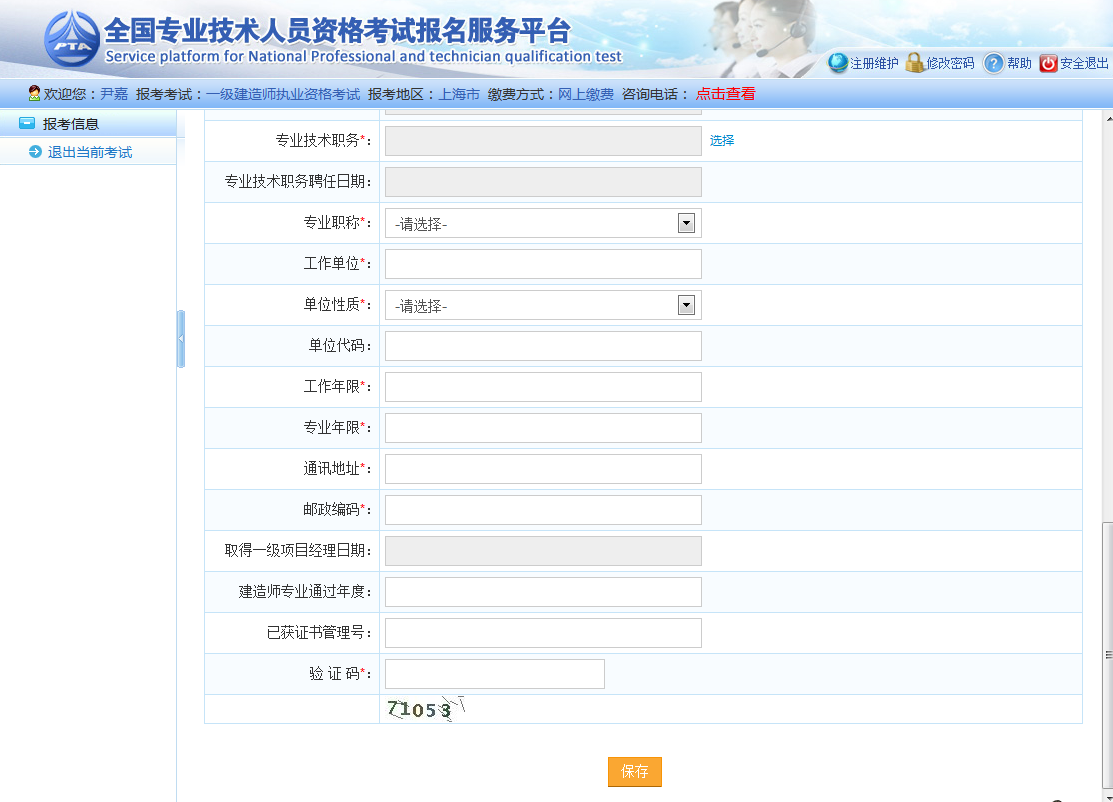 考生填完報(bào)名信息后點(diǎn)擊保存按鈕,完成報(bào)名。