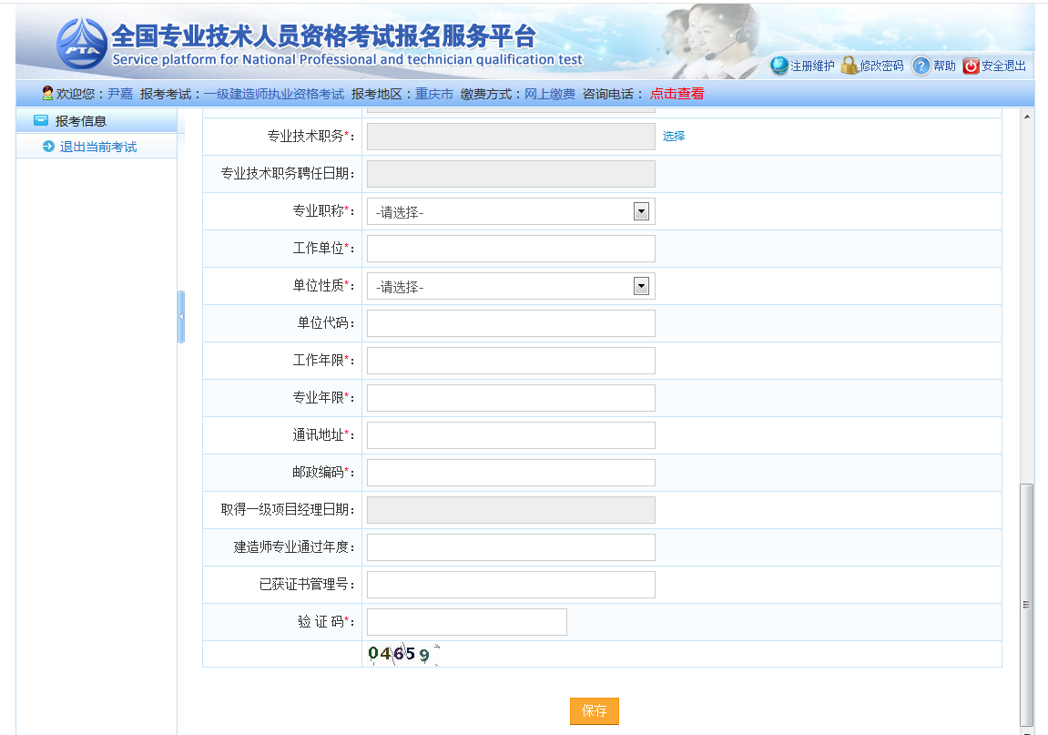 考生填完報(bào)名信息后點(diǎn)擊保存按鈕,完成報(bào)名。