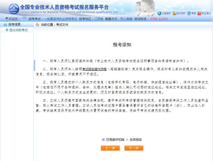 考生們選擇考試類別及考試地區(qū)后,需要仔細閱讀專業(yè)技術(shù)人員資格考試報名證明事項告知承諾制告知書: