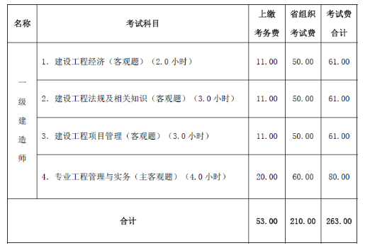 山西省一級建造師資格考試收費標準(單位:元):