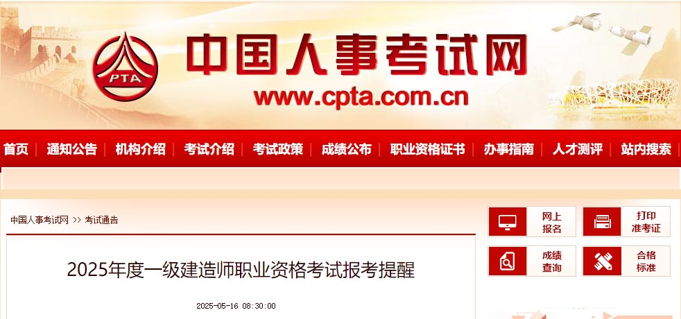 中國人事考試網(wǎng):2025年度一級建造師職業(yè)資格考試報考提醒