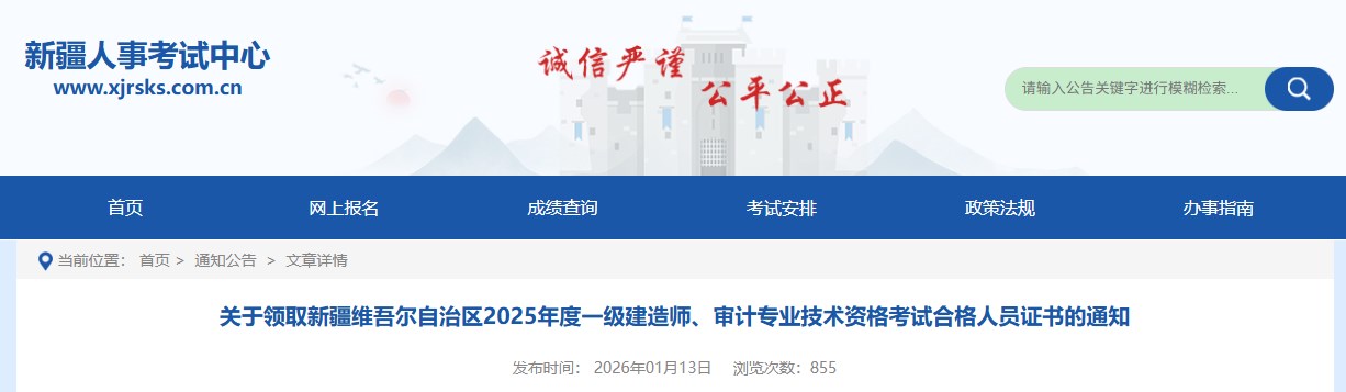 新疆人事考試中西發(fā)布關(guān)于領(lǐng)取新疆維吾爾自治區(qū)2025年度一級(jí)建造師、審計(jì)專業(yè)技術(shù)資格考試合格人員證書的通知,具體信息如下: