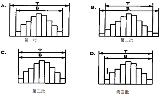 某鋼構(gòu)件廠根據(jù)供貨合同先后生產(chǎn)了4批鋼構(gòu)件,各批次的質(zhì)量統(tǒng)計(jì)直方圖如下所示。其中出現(xiàn)不合格構(gòu)件,必須采取措施糾偏的是()。