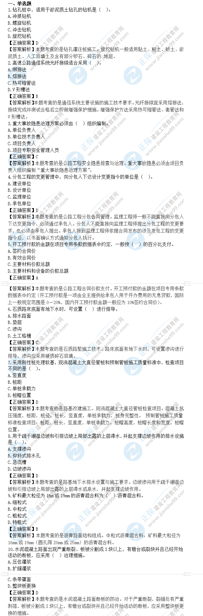- · 2019年一級建造師《公路實(shí)務(wù)》試題及答案解析1-10