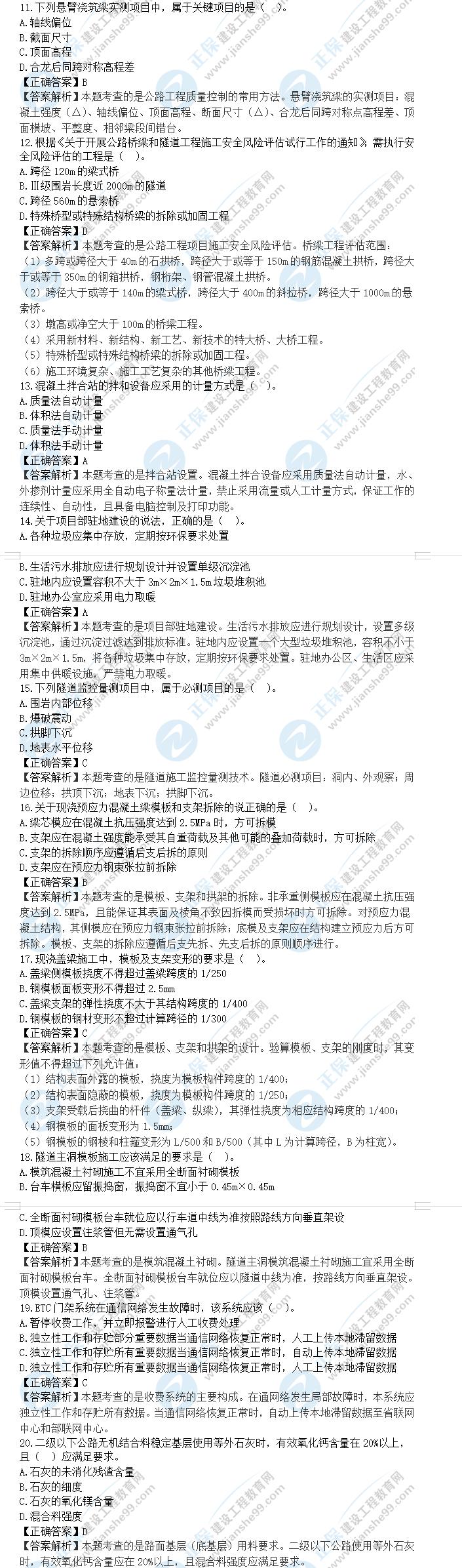 - · 2019年一級建造師《公路實(shí)務(wù)》試題及答案解析11-20