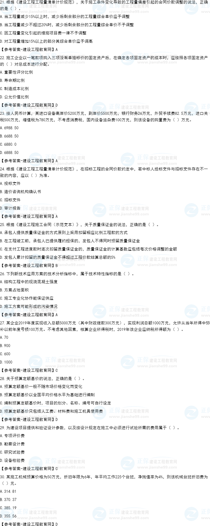 2022年一級建造師工程經(jīng)濟(jì)補(bǔ)考試題及答案21-30題。建設(shè)工程教育網(wǎng)考后將會根據(jù)學(xué)員反饋,及時匯總2022年一級建造師工程經(jīng)濟(jì)補(bǔ)考試題及答案分享給大家,并且會及時做出答案解析,希望能為廣大一建考生朋友帶來幫助。