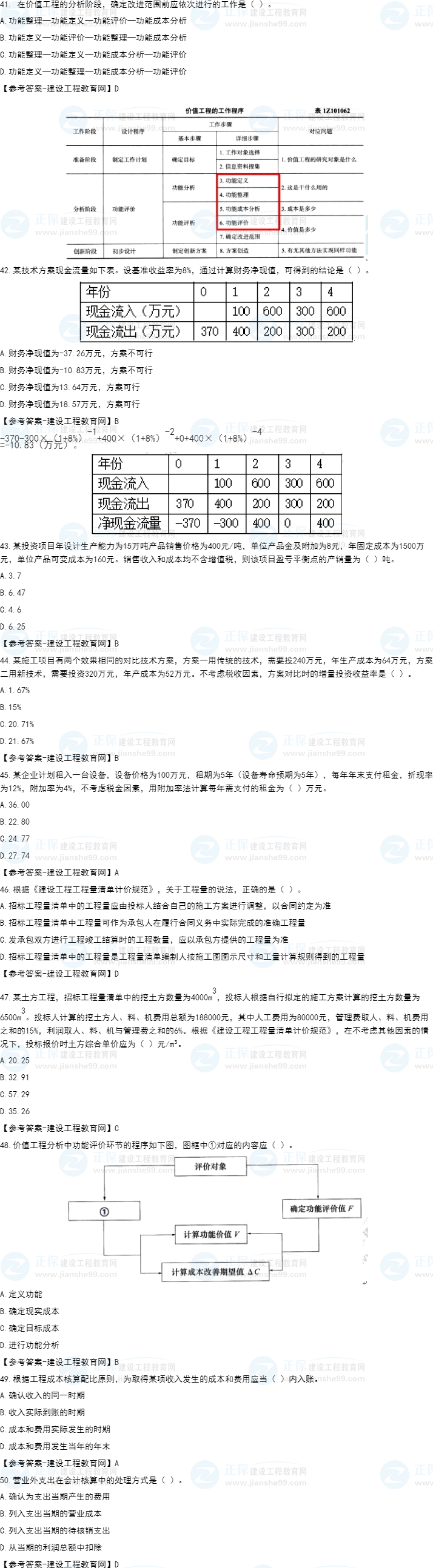 2022年一級(jí)建造師考試(補(bǔ)考)工程經(jīng)濟(jì)試題及答案41-50題