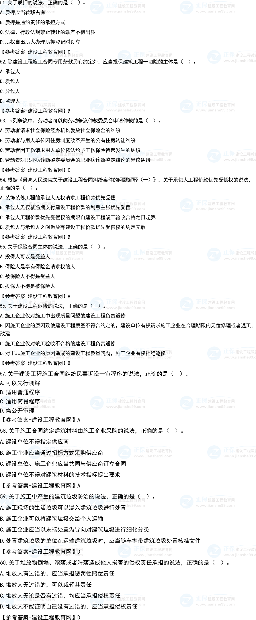 2022年一級建造師補考工程法規(guī)試題及答案51-60題。建設工程教育網(wǎng)考后將會根據(jù)學員反饋,及時匯總2022年一級建造師工程法規(guī)補考試題及答案分享給大家,并且會及時做出答案解析,希望能為廣大一建考生朋友帶來幫助。