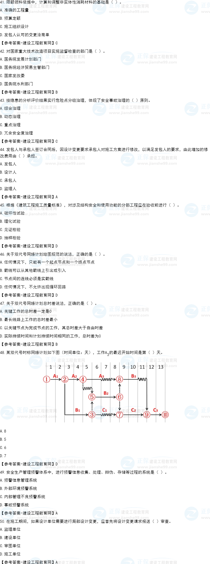 2022年一級(jí)建造師考試(補(bǔ)考)項(xiàng)目管理試題及答案解析41-50題