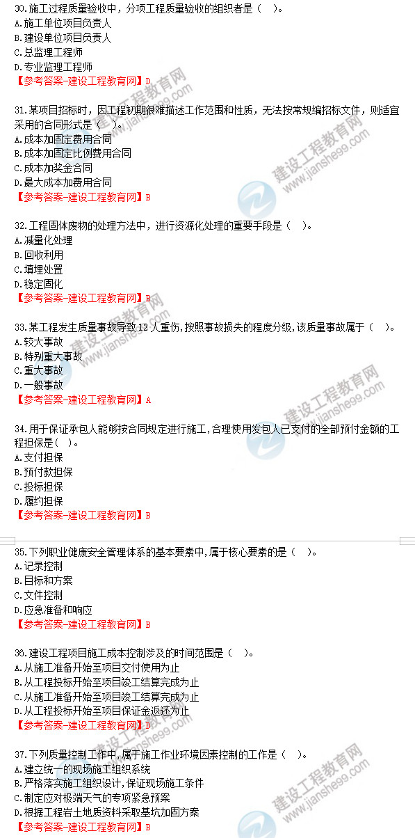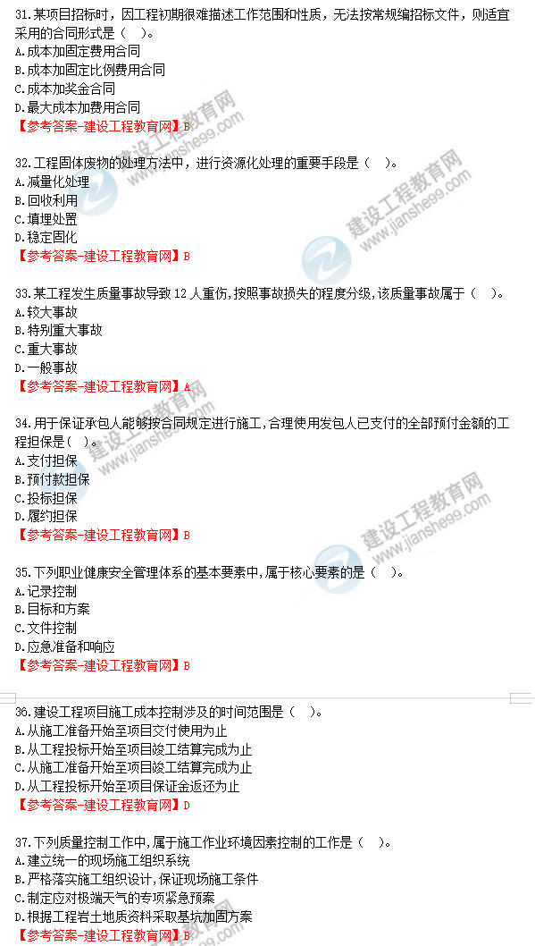 2019年一級(jí)建造師《建設(shè)工程項(xiàng)目管理》試題答案及解析31-40
