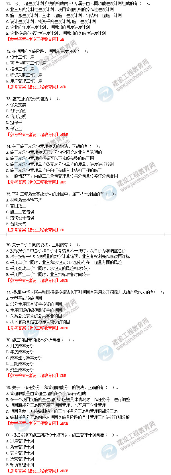 2019年一級建造師《建設工程項目管理》試題答案及解析71-80