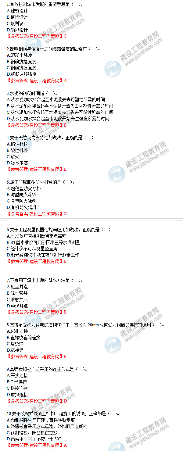 2019年一級建造師《建筑實(shí)務(wù)》試題及答案解析1-10