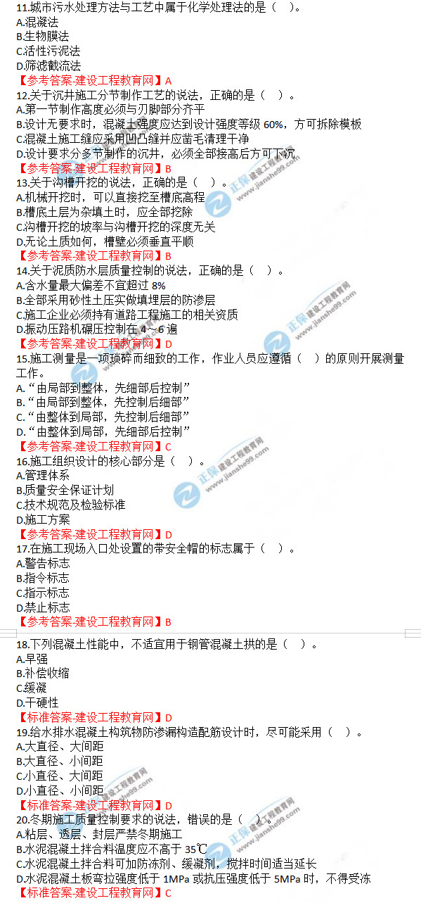 以上就是為大家分享的2019年一級(jí)建造師考試《市政公用工程管理與實(shí)務(wù)》試題及答案解析,建設(shè)工程教育網(wǎng)將持續(xù)關(guān)注2020年一級(jí)建造師考試的相關(guān)信息。更多2020年一級(jí)建造師考試內(nèi)容,盡在建設(shè)工程教育網(wǎng)一級(jí)建造師欄目!