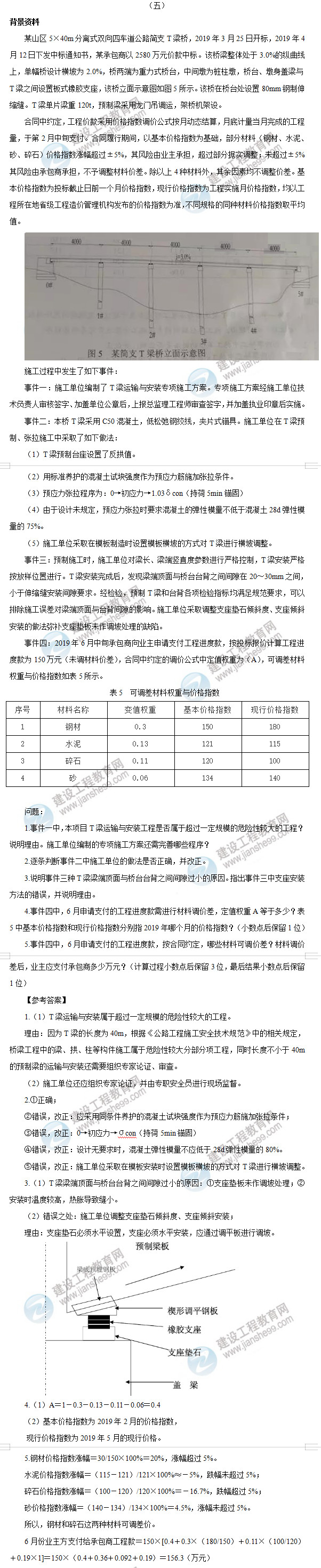 2019年一級(jí)建造師《公路實(shí)務(wù)》試題及答案解析案例五