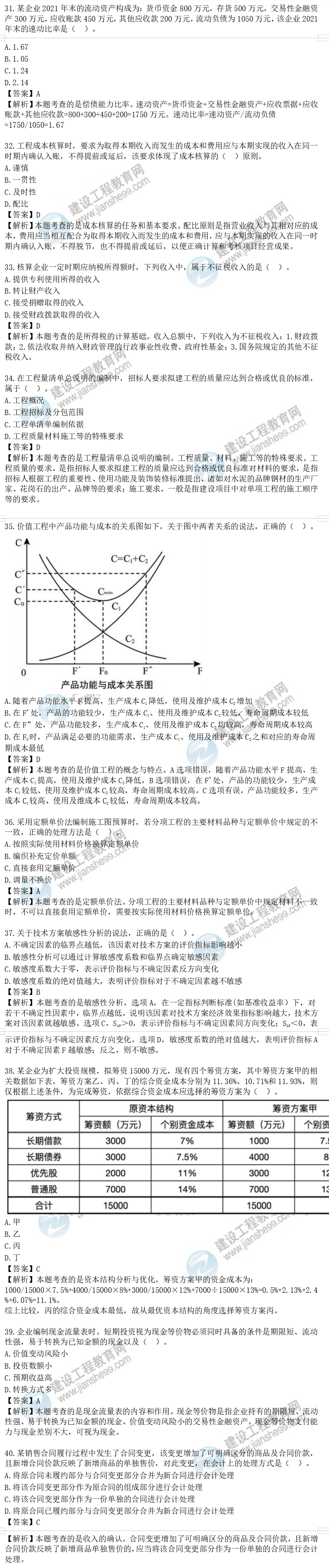 2022年一級建造師考試工程經(jīng)濟試題及答案解析31-40題
