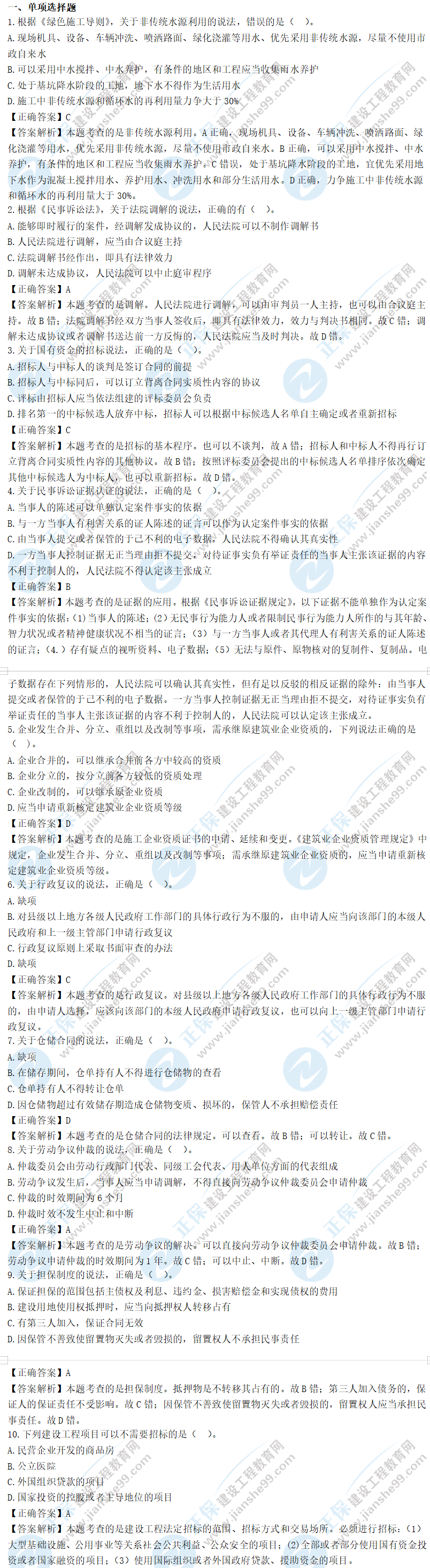 2022年一級建造師工程法規(guī)試題及答案1-10題,建設(shè)工程教育網(wǎng)考后將會根據(jù)學(xué)員反饋,及時(shí)匯總2022年一級建造師工程法規(guī)試題及答案分享給大家,并且會及時(shí)做出答案解析,希望能為廣大一建考生朋友帶來幫助。