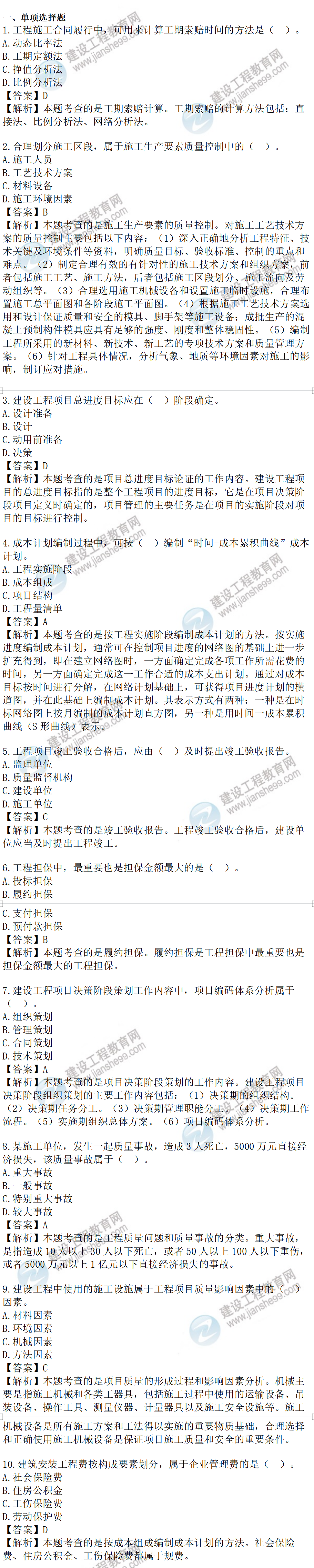 2022年一級建造師考試項目管理試題及答案解析1-10題
