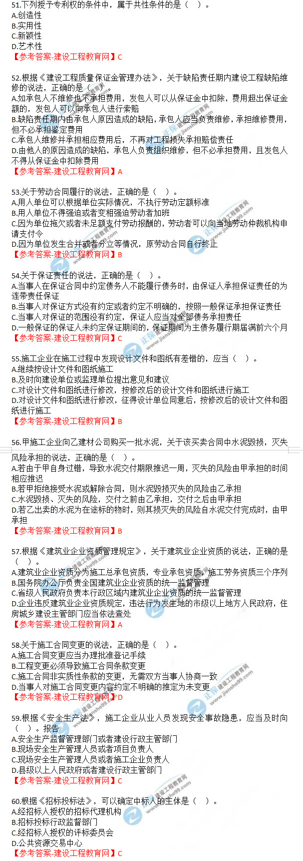 2019年一級建造師《建設工程法規(guī)及相關知識》試題答案及解析51-60