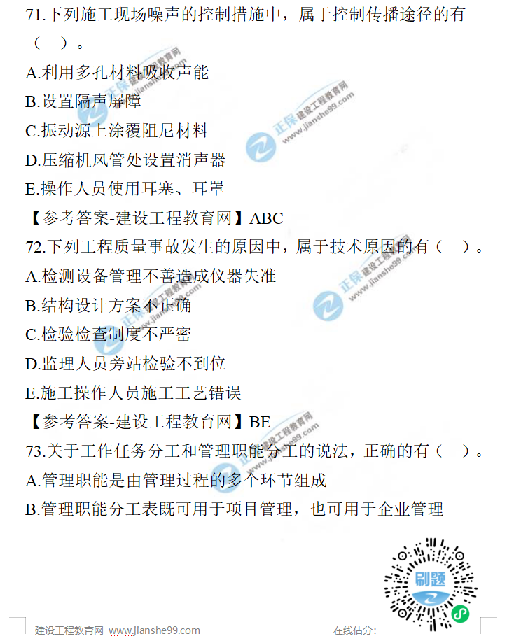 2021年一級(jí)建造師項(xiàng)目管理試題及答案71-80題,建設(shè)工程教育網(wǎng)考后將會(huì)根據(jù)學(xué)員反饋,及時(shí)匯總2021年一級(jí)建造師項(xiàng)目管理試題及答案分享給大家,并且會(huì)及時(shí)做出答案解析,希望能為廣大一建考生朋友帶來(lái)幫助。