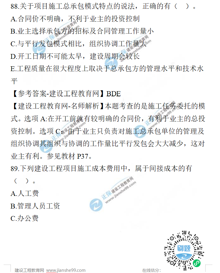2021年一級建造師項目管理試題及答案81-90題,建設工程教育網(wǎng)考后將會根據(jù)學員反饋,及時匯總2021年一級建造師項目管理試題及答案分享給大家,并且會及時做出答案解析,希望能為廣大一建考生朋友帶來幫助。