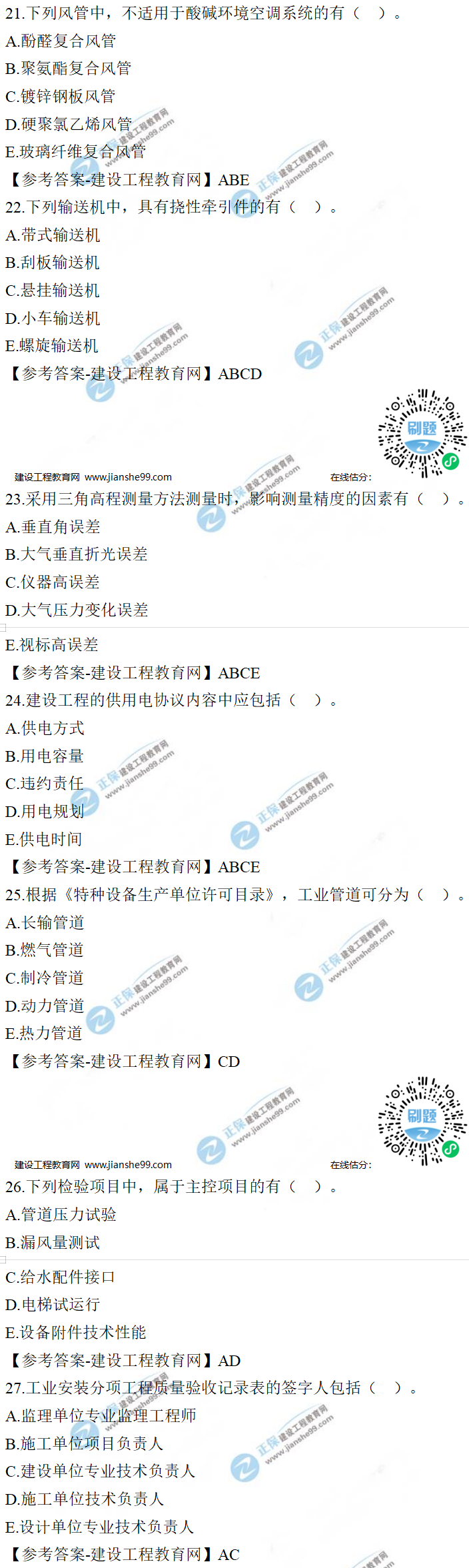 2021年一級建造師機(jī)電工程試題及答案解析21-30題