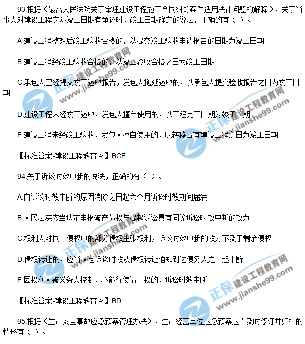 2018年一級建造師《法規(guī)》試題答案及解析(91-100)