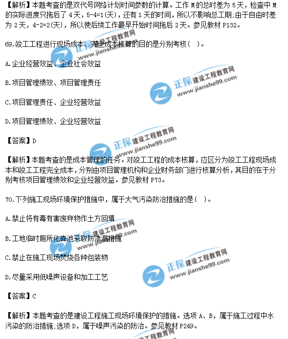 以上就是關(guān)于2018年一級建造師《項目管理》試題及答案(61-70),同學(xué)們可以及時看看自己考的怎么樣,根據(jù)網(wǎng)校2018年一級建造師試題答案及解析進行一個大致的估分,以便做好下一步的備考規(guī)劃。