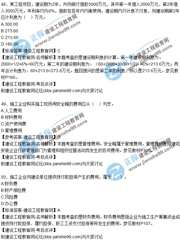 2017年一級(jí)建造師《建設(shè)工程經(jīng)濟(jì)》試題及答案(41-50)