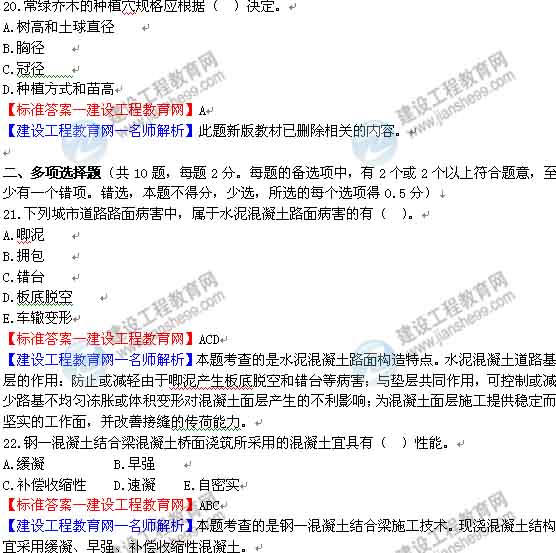 --------------------------------------------------------------- 一建市政工程管理與實務(wù)第19-25選擇題:
