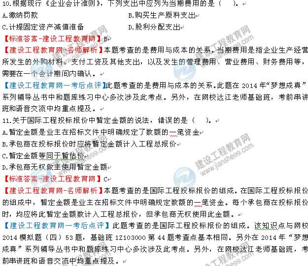 2014一級建造師工程經(jīng)濟(jì)答案及解析由老師整理而成,部分網(wǎng)站未經(jīng)許可擅自轉(zhuǎn)載、抄襲,造成內(nèi)容有所缺失或錯(cuò)誤,請大家以建設(shè)工程教育網(wǎng)發(fā)布為準(zhǔn)!