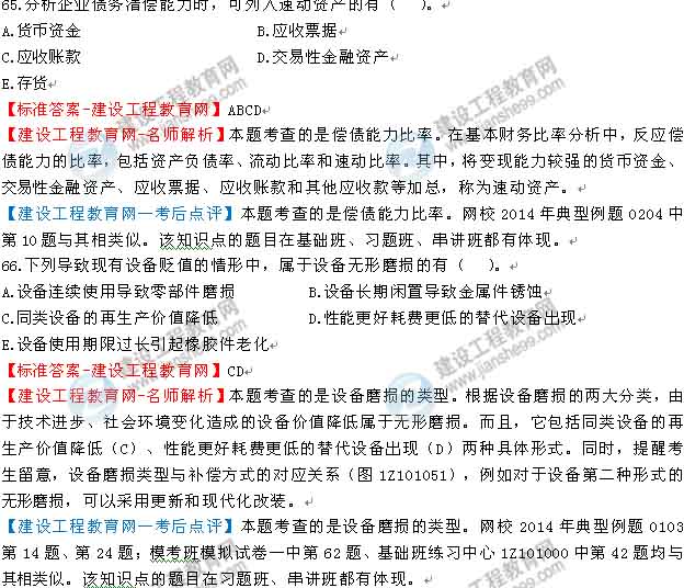 2014一級(jí)建造師工程經(jīng)濟(jì)答案及解析由老師整理而成,部分網(wǎng)站未經(jīng)許可擅自轉(zhuǎn)載、抄襲,造成內(nèi)容有所缺失或錯(cuò)誤,請(qǐng)大家以建設(shè)工程教育網(wǎng)發(fā)布為準(zhǔn)!