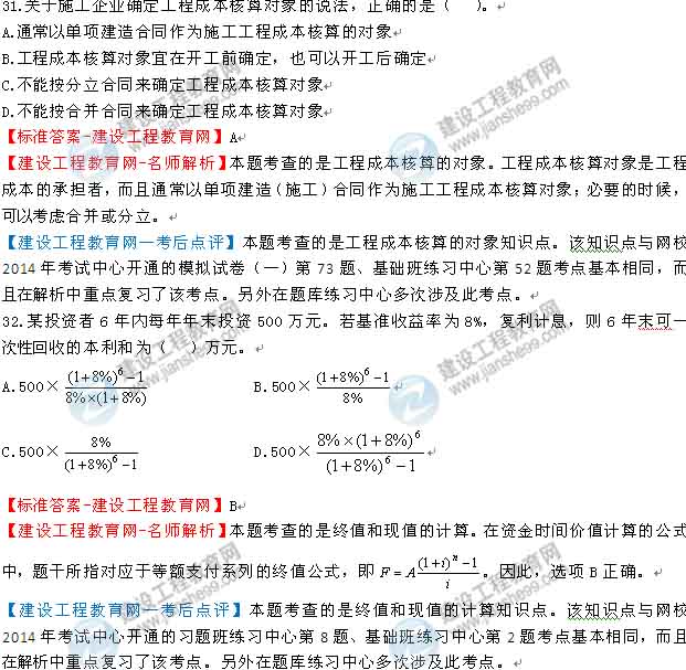 2014一級建造師工程經(jīng)濟(jì)答案及解析由老師整理而成,部分網(wǎng)站未經(jīng)許可擅自轉(zhuǎn)載、抄襲,造成內(nèi)容有所缺失或錯誤,請大家以建設(shè)工程教育網(wǎng)發(fā)布為準(zhǔn)!