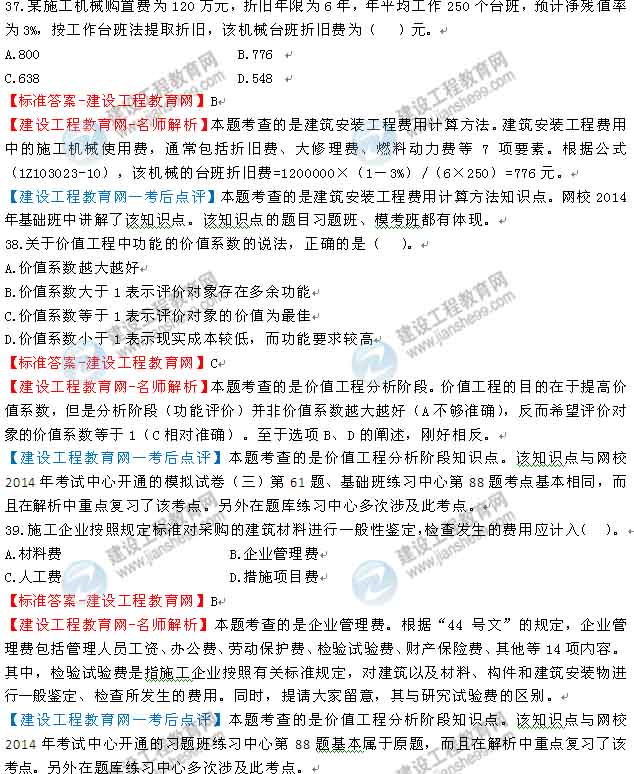 2014一級(jí)建造師工程經(jīng)濟(jì)答案及解析由老師整理而成,部分網(wǎng)站未經(jīng)許可擅自轉(zhuǎn)載、抄襲,造成內(nèi)容有所缺失或錯(cuò)誤,請(qǐng)大家以建設(shè)工程教育網(wǎng)發(fā)布為準(zhǔn)!