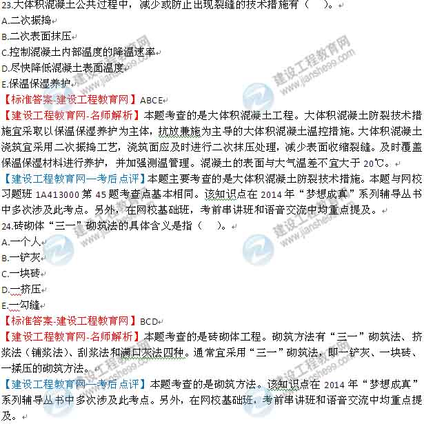 【老師解析】2014年一級(jí)建造師建筑管理與實(shí)務(wù)試題及答案(22-25)