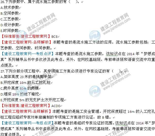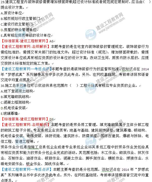 【老師解析】2014年一級建造師建筑管理與實務(wù)試題及答案(26-30)