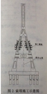 編制索塔施工方案時(shí),施工單位根據(jù)本橋索塔特點(diǎn),對滑模和爬模兩種施工方法進(jìn)行了比選,最終選擇了適合本橋特點(diǎn)的施工方案,塔索施工示意圖見圖2。