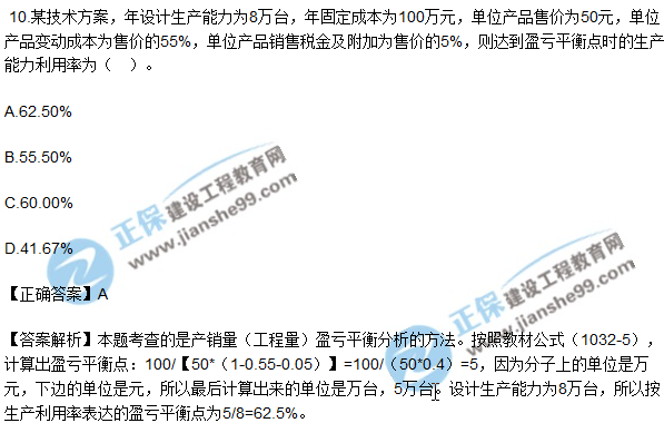 2016一級(jí)建造師《建設(shè)工程經(jīng)濟(jì)》試題答案1-10