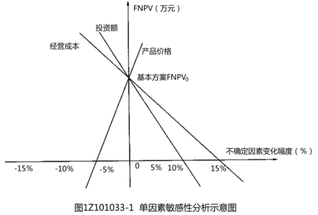 每一條直線的斜率反映技術方案經(jīng)濟效果評價指標對該不確定因素的敏感程度,斜率越大敏感度越高。