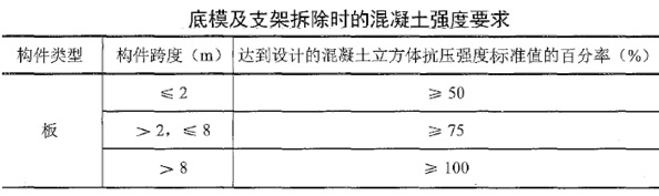 從上表可以看出,當跨度大于2m的混凝土板利用快拆支撐體系,可劃分為多個跨度為2m的簡支板結構,這樣底模的拆模時間就會從75%或100%,降低為50%.拆模要求的混凝土達到的強度降低,模板占用時間短,周轉速率大幅度提高。