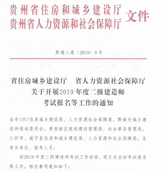 點(diǎn)擊查看考務(wù)文件:貴州關(guān)于開展2019年度二級建造師考試報(bào)名等工作的通知