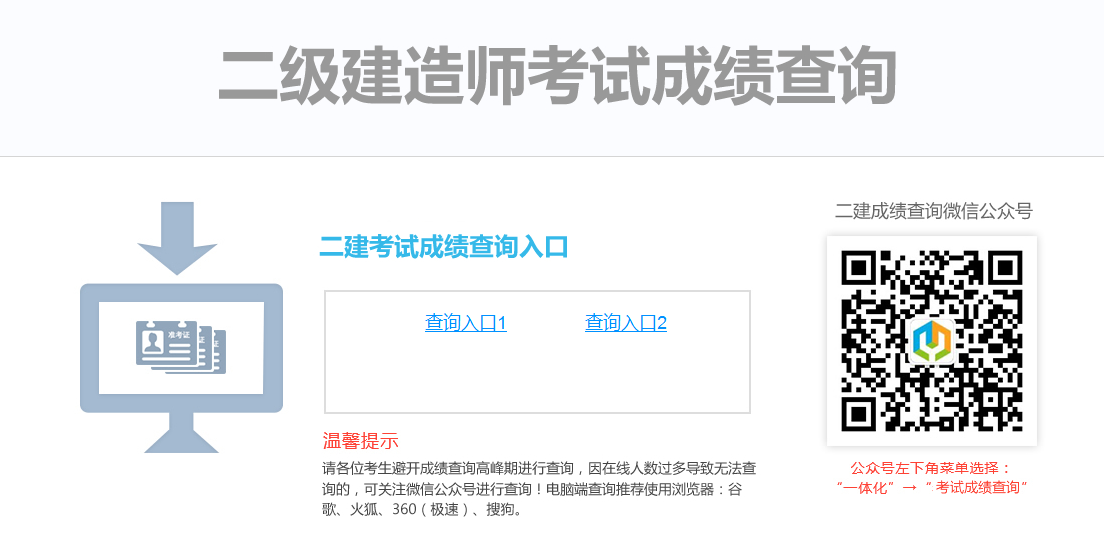 云南二建成績?nèi)肟冢簽閮蓚€查詢?nèi)肟?,填寫查詢條件即可查詢。另有微信公眾號可查詢云南二建成績