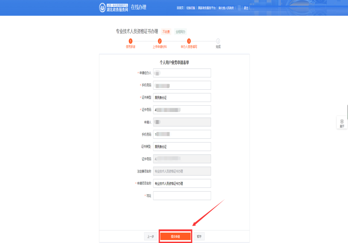 湖北政務(wù)服務(wù)網(wǎng)專業(yè)技術(shù)人員資格證書辦理操作指南