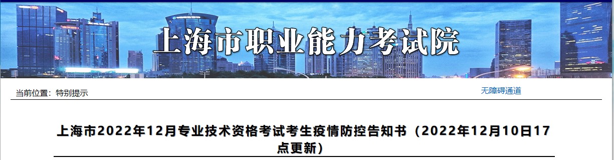 上海市2022年12月專業(yè)技術(shù)資格考試考生疫情防控告知書(2022年12月10日17點更新)