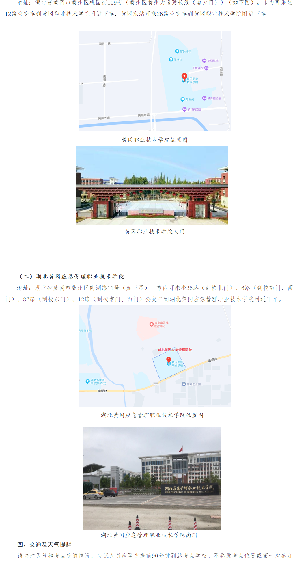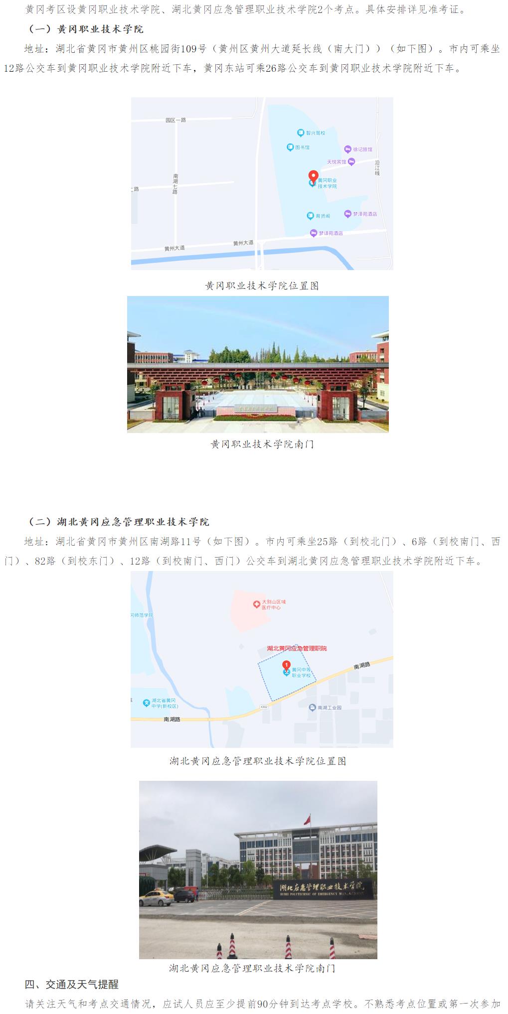三、黃岡考區(qū)考點(diǎn)設(shè)置及交通路線